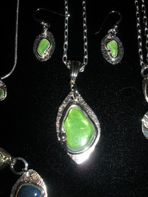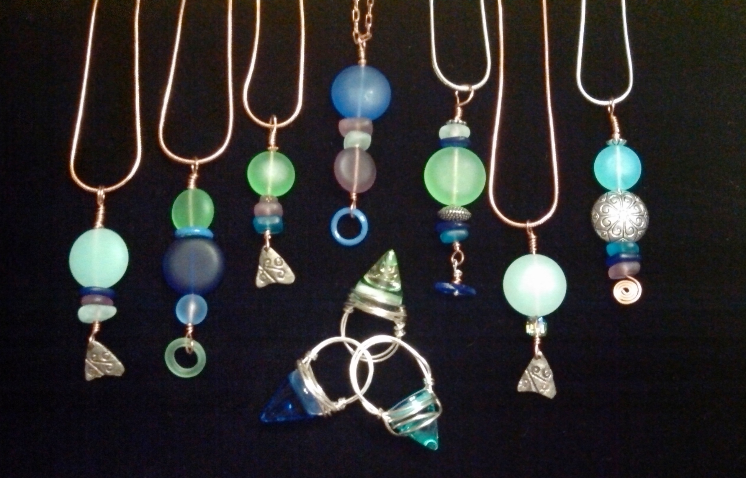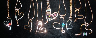 I also included my Hammered Heart Series, hearts hammered from copper or fine silver; some jeweled with pieces of art glass, crystal, gems, or beads.