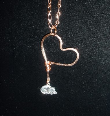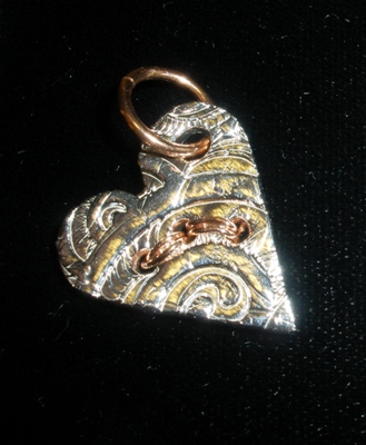 Maggie’s Heart:  Hammered copper and fine silver.