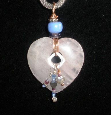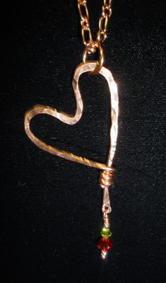 I also included my Hammered Heart Series, hearts hammered from copper or fine silver; some jeweled with pieces of art glass, crystal, gems, or beads.