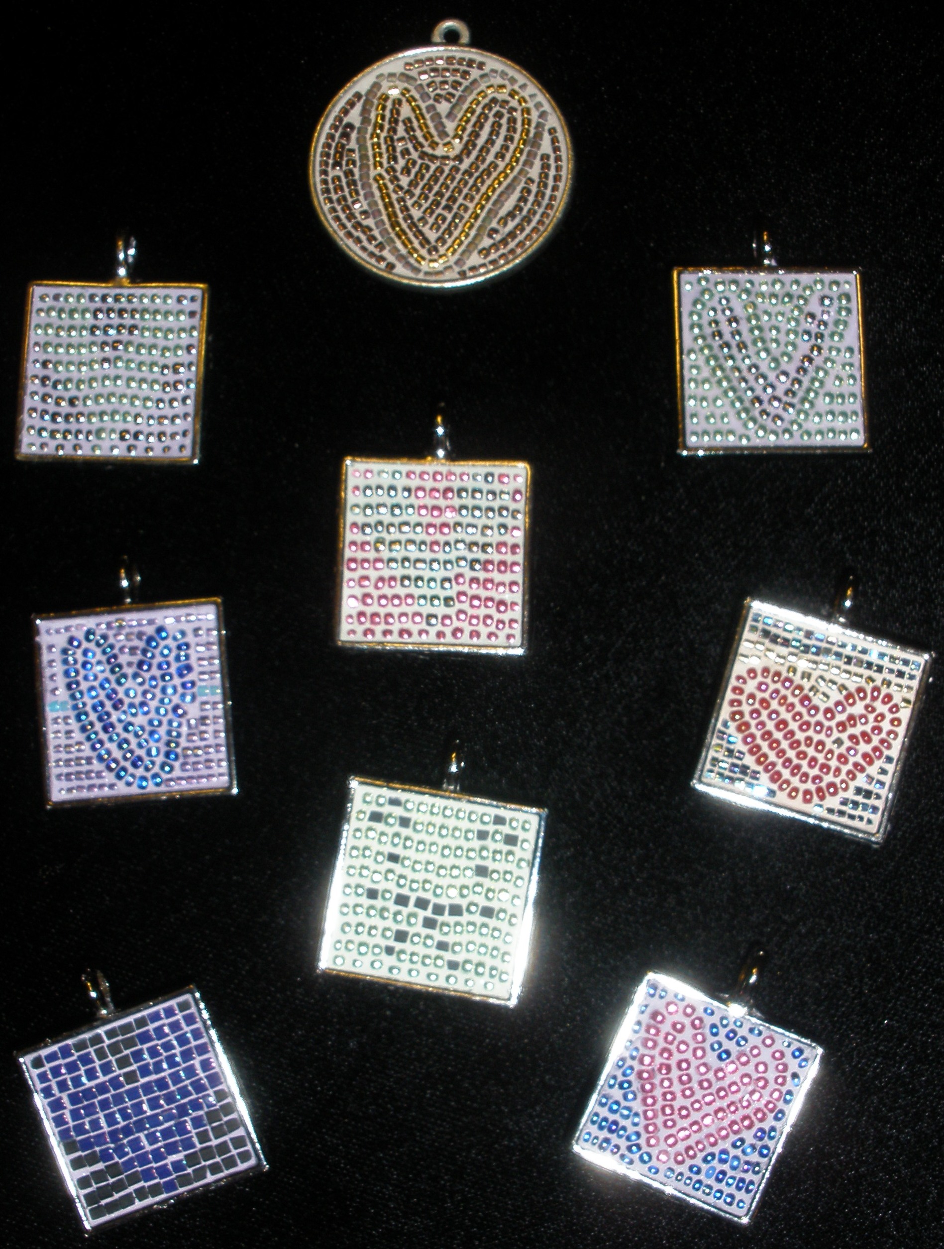 Rings are the thing this month as I’ve added some “bullet” lampworked glass/wire-wrapped rings, and beach glass pendants with tinkling drops. A splash of last minute color to remember summer as we head into fall.